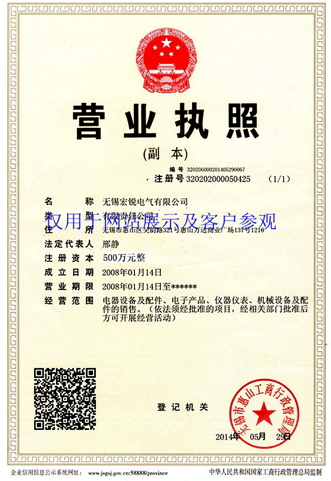 无锡宏锐电气有限公司属于自然人独资,注册资金500万元整,主要从事电器设备及配件、电子产品、仪器仪表、机械设备及配件的销售,其他依法批准的项目及经营活动。