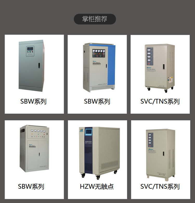 要求更高的采用智能型无触点补偿式交流稳压器,主要采用新高速DSP运算芯片控制技术、快速交流采样技术、有效值校正技术、电压电流过零切换技术和快速补偿稳压技术,将智能仪表、快速稳压和故障诊断结合在一起,使产品安全、高效、精密。