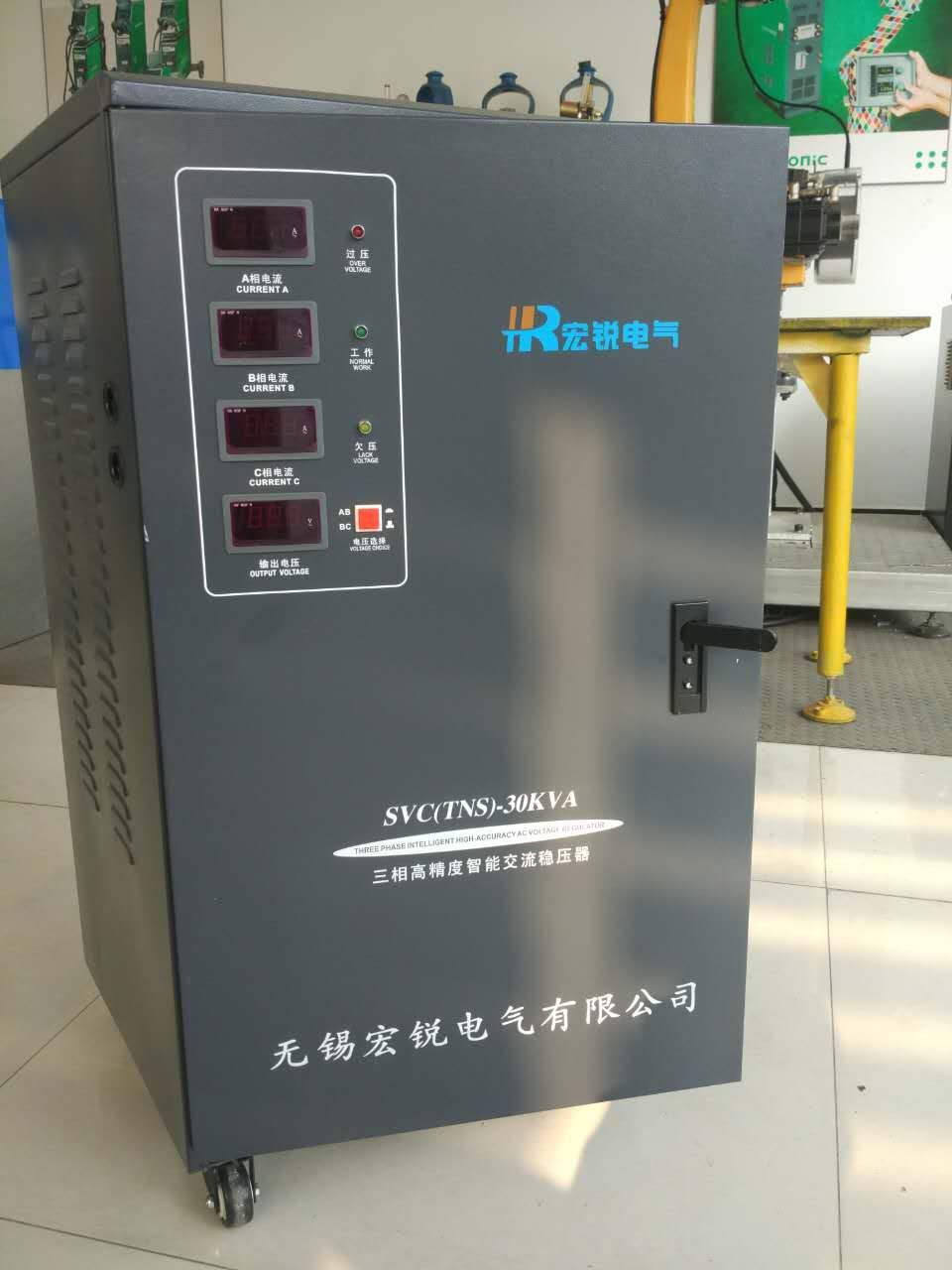 2、SBW系列,大功率全自动补偿式稳压器适用于大功率设备使用及电网环境比较恶劣的场所使用比较合适,SBW系列,功率范围比较广,最大功率理论值可以做到1万千瓦,目前宏锐电气实际使用案例最大功率做到2000KVA,SBW系列稳压器适用负载类型也很广,阻性、容性、感性均可适用,特别适用大功率设备稳压使用,具有耐用皮实、维护方便、抗过载能力强,特别是抗瞬时电流冲击能力强。