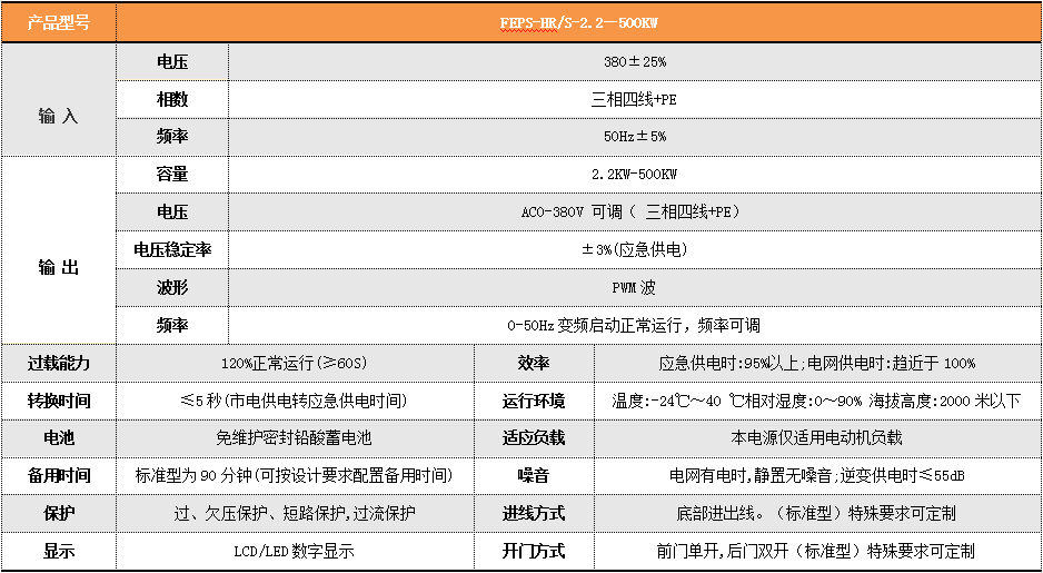 FEPS HR S系列三相动力变频型消防应急电源是仅为一路电源的消防设施或一级负荷中的电动机提供可变频的三相应急电源,解决电动机启动过程对电网的瞬间冲击或应急供电时对EPS应急电源逆变器的冲击。采用美国德州仪器公司TMS28系列DSP数字处理芯片控制,CPLD逻辑控制芯片作为DSP执行终端,先进SPWM的编程算法,最新一代IGBT模块,有效的控制策略,研制出的高科技环保型专利产品。具有高速数据处理能力,完善的保护功,可靠性强,维护简单方便。