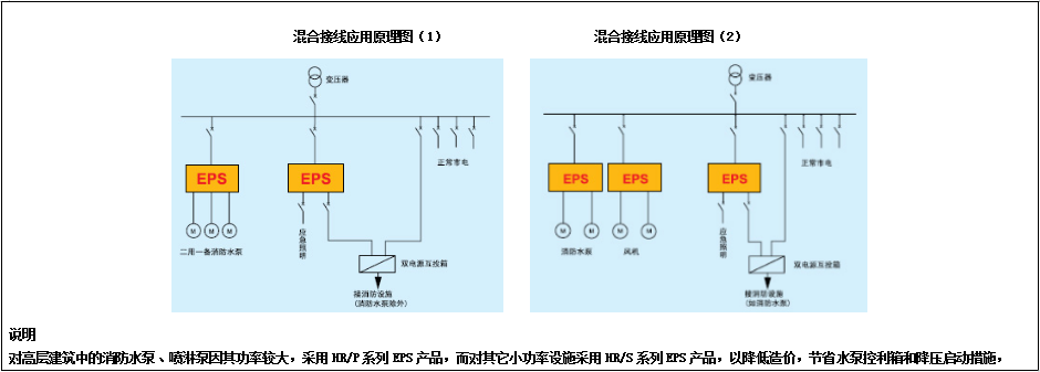◎ 高层建筑:电梯、水泵 、风机、疏散照明、地下车库照明等