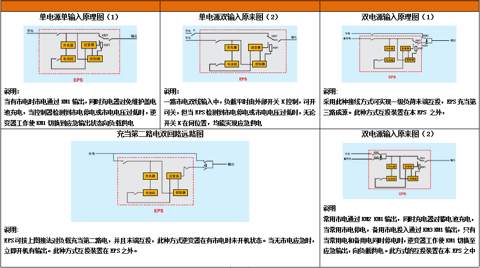EPS全称是Emergency Power Supply(紧急的电源供给),是当今重要建筑物的电力保障和消防安全而采用的一种应急电源设备。其原理为,当电网正常时,由电网经过互投装置给负载供电,同时充电器给蓄电池进行智能充电当电网断电后或电网波动超过正常电压的20%时,由EPS智能控制系统快速切换到逆变器供电,由储能蓄电池直流电经逆变后继续为负载供正弦波交流电,当电网电压恢复时,应急电源将智能切换为电网供电。