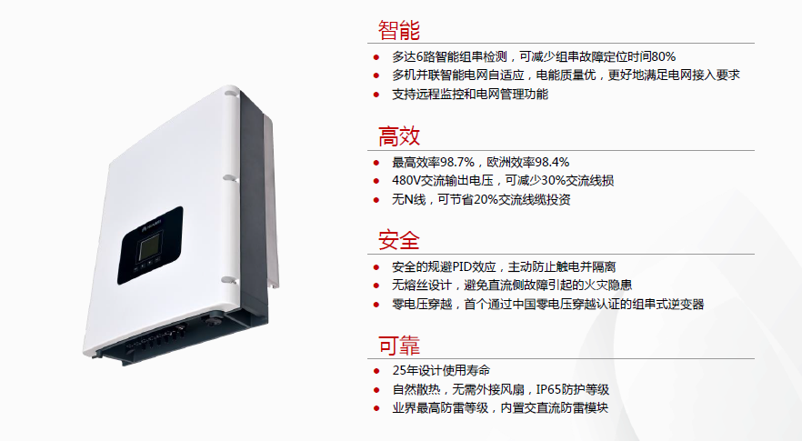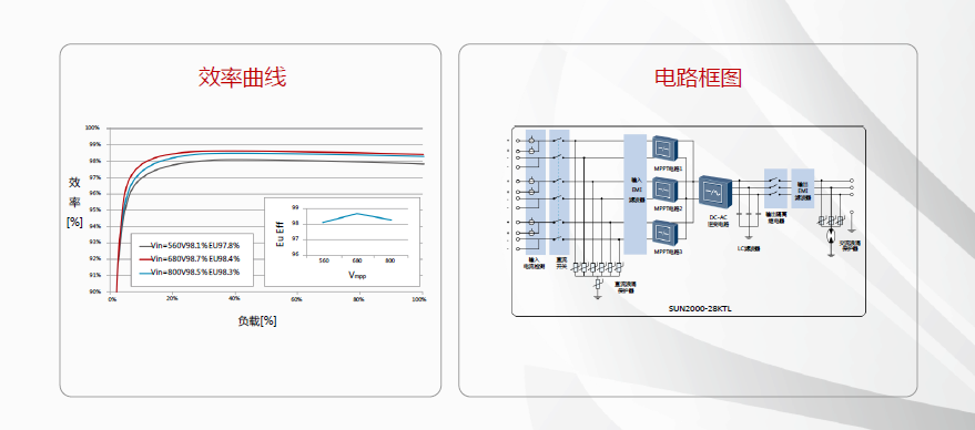 高效:效率可达 98.78% , 欧洲效率 98.4 %,发电量提升5%以上;
