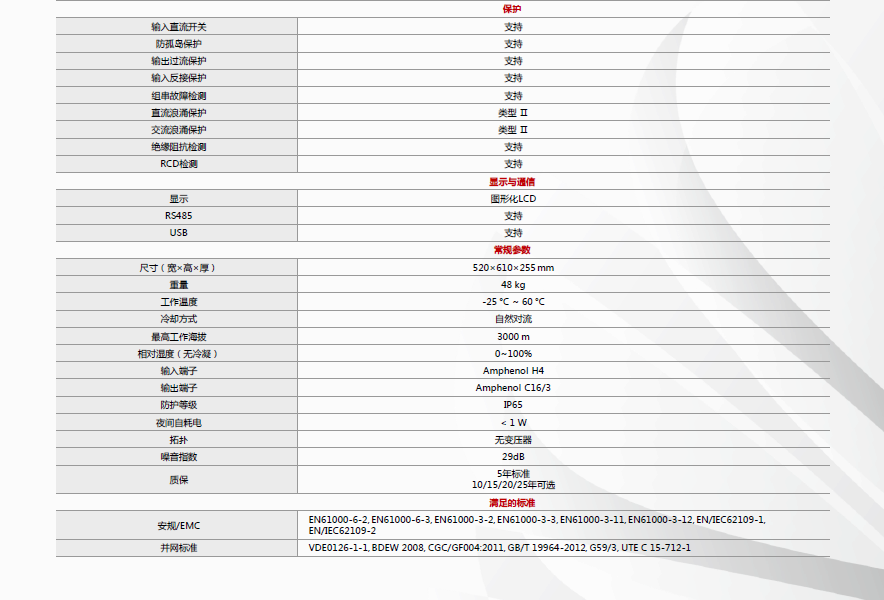 安全:内置II型交直流防雷模块,无熔丝设计,有效防止直流侧故障引起的火灾隐患;