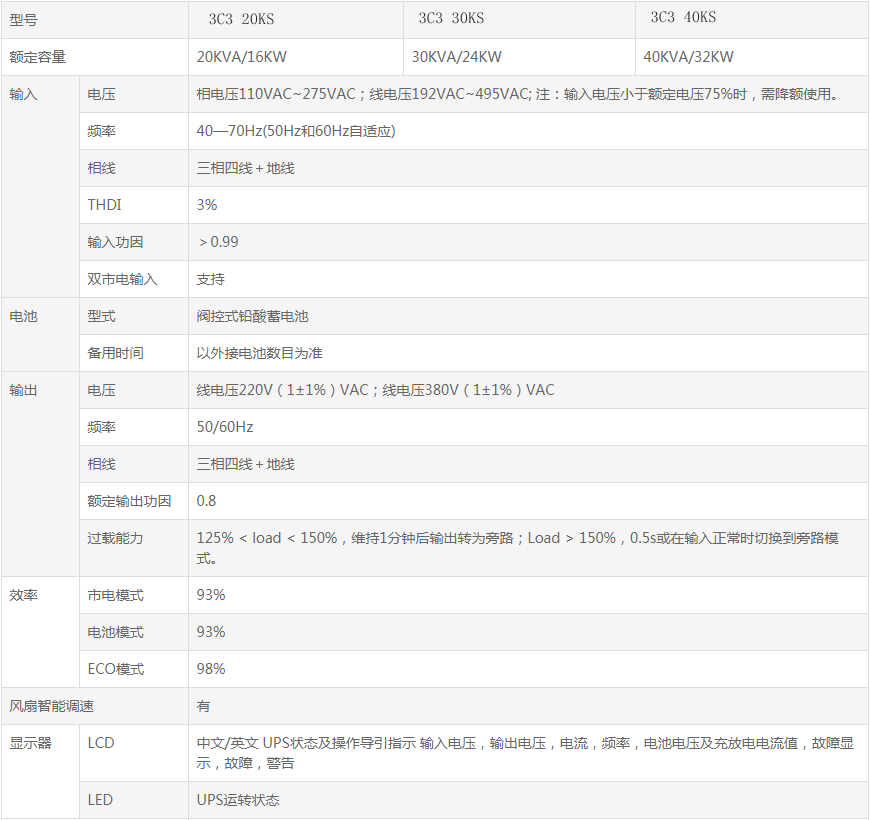 高频在线式三进三出3C320KS3C340KS UPS电源是电信、金融、交通、政府、制造、能源等多种行业或领域数据中心、网络管理中心、企业服务器机房的最佳选择。