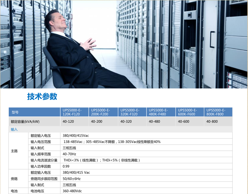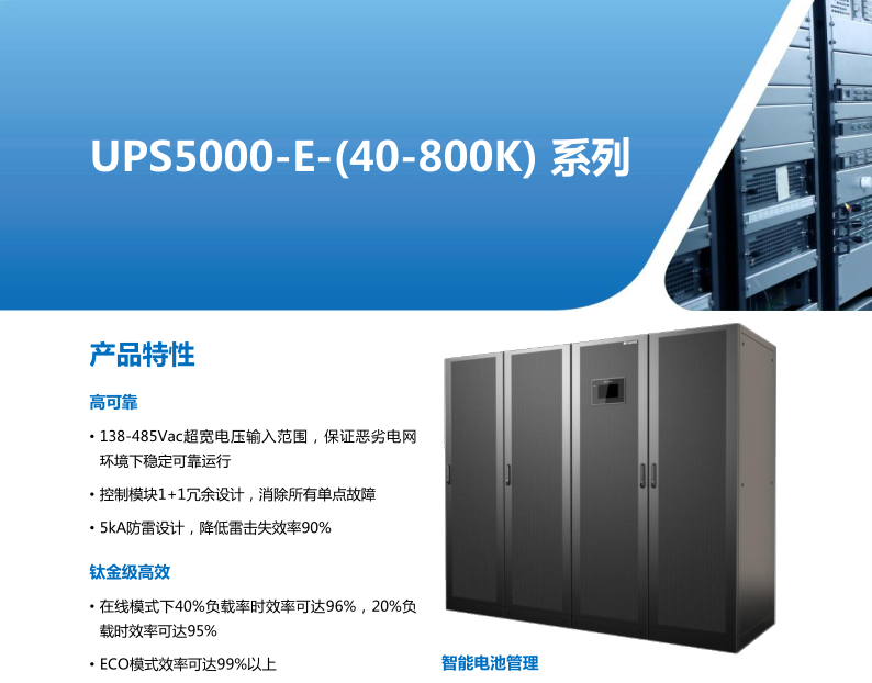 UPS5000-E系列是专为中大型数据中心等场景而设计的模块化不间断电源。