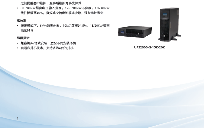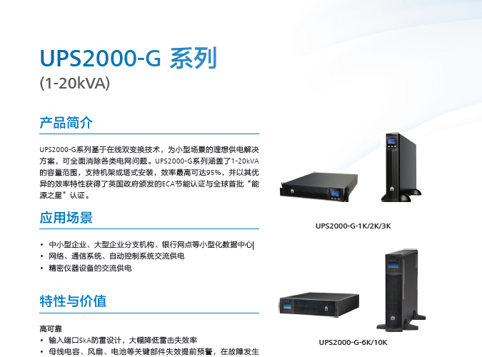 UPS2000-G系列是专为小型数据中心、分支机构、营业网点、办公等场景而设计的小型不间断电源。