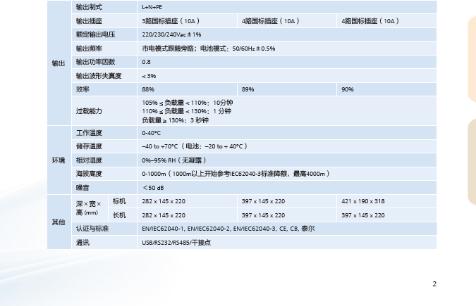 UPS2000-A系列基于在线双变换技术,可全面消除九种电力故障的影响,有效保护负载。
